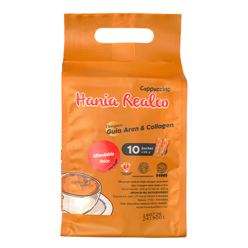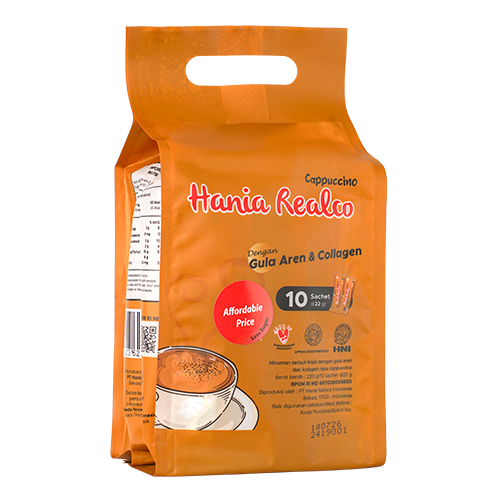 Minuman serbuk kopi dengan gula aren dan kolagen, rasa cappuccino, less sugar & dengan harga terjangkau.